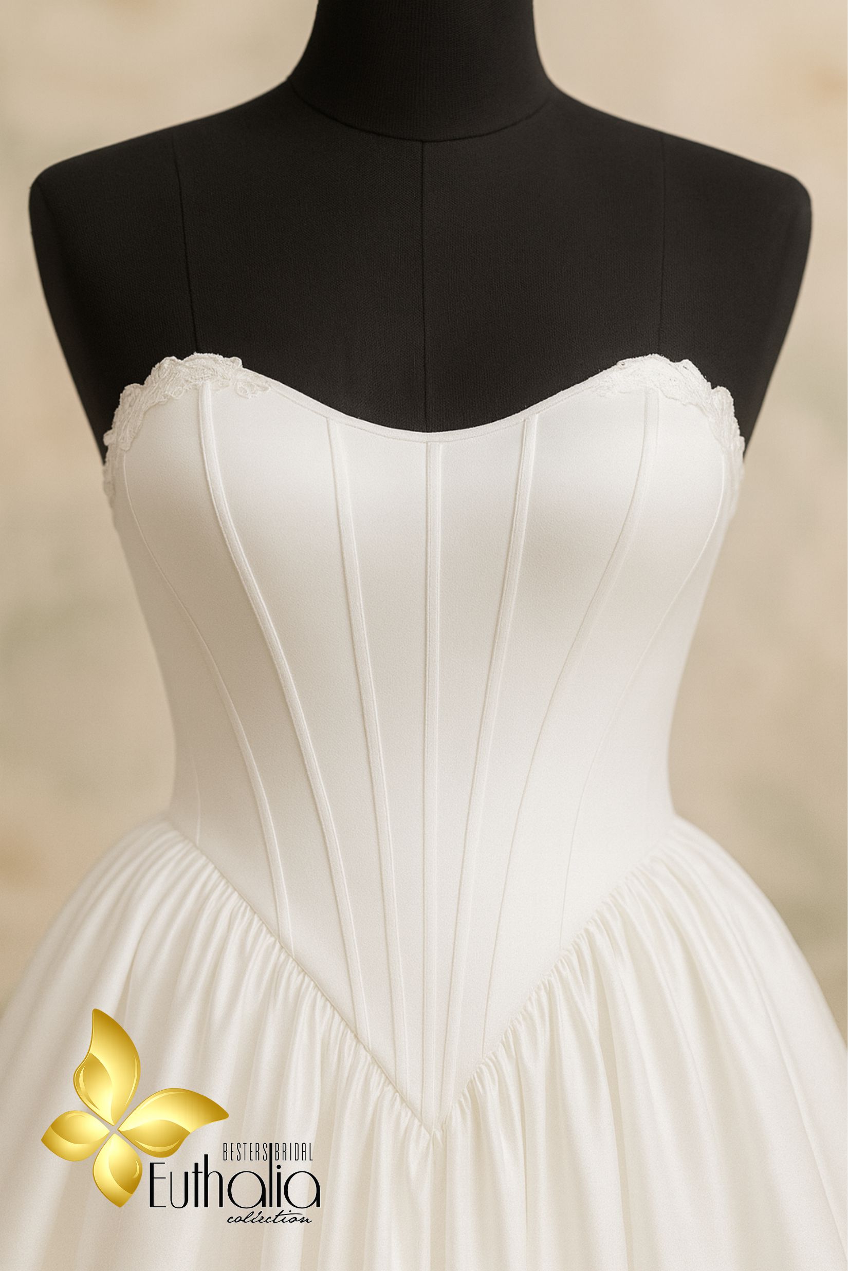 Designed for the bride who loves clean lines, soft lace, and graceful movement, this dress blends classic structure with modern softness.